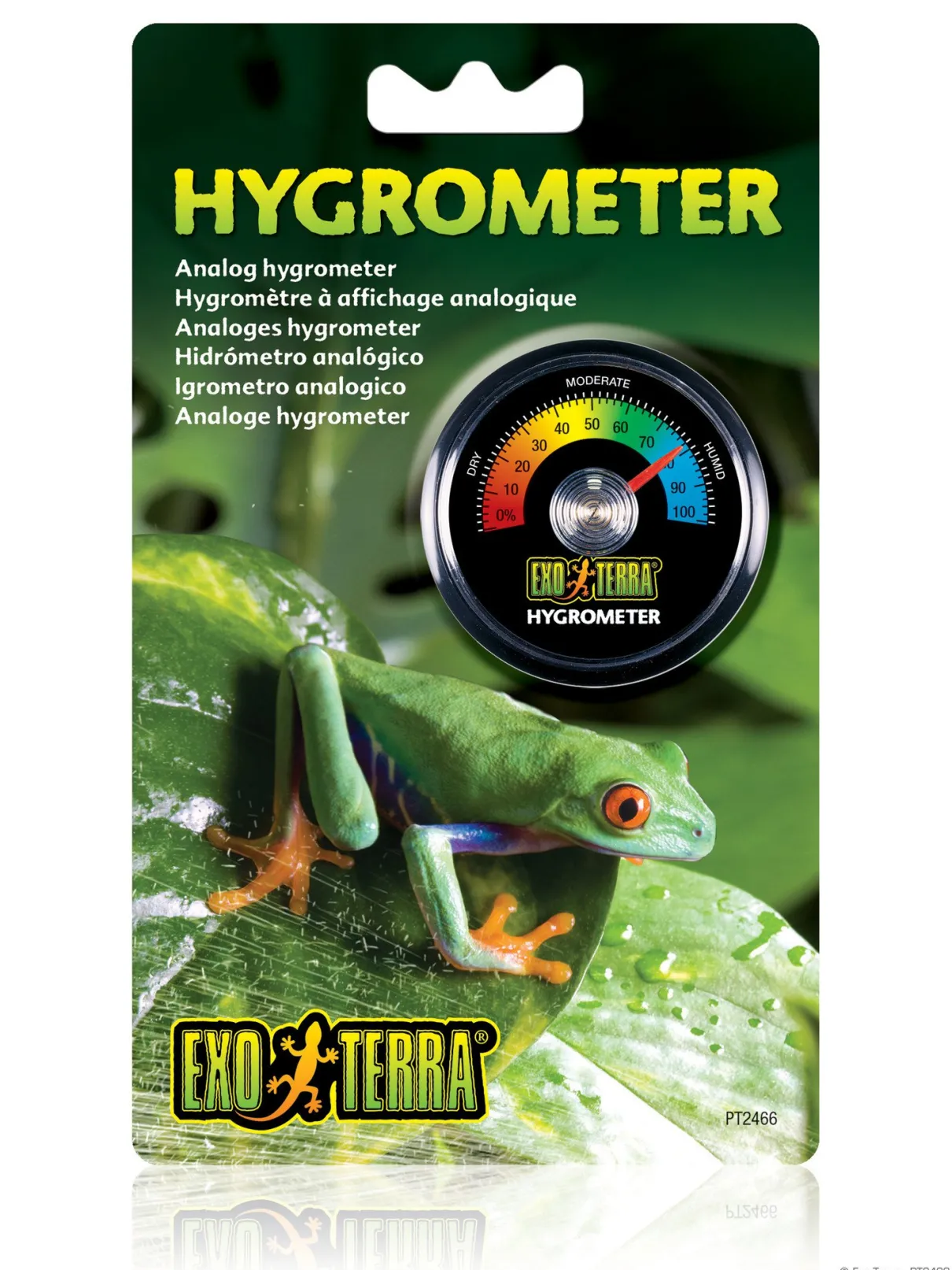 The Exo Terra Analog Hygrometer is for monitoring terrarium humidity levels. Easy to read and install.