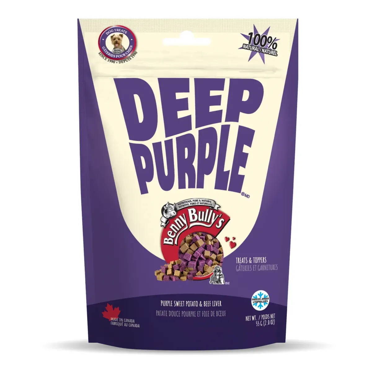 Dog owners have discovered Benny Bullys® as a nutritious pure and natural alternative to traditional dog treats. We developed an innovative cutting and drying process, as an alternative to conventional food preservatives, making Benny Bullys® one of the few “no chemicals added” treats on the market today. Japanese purple sweet potatoes are hand selected and combined with Benny Bullys beef liver, making a perfect treat for dogs of all breeds and ages, and their health conscious owners.