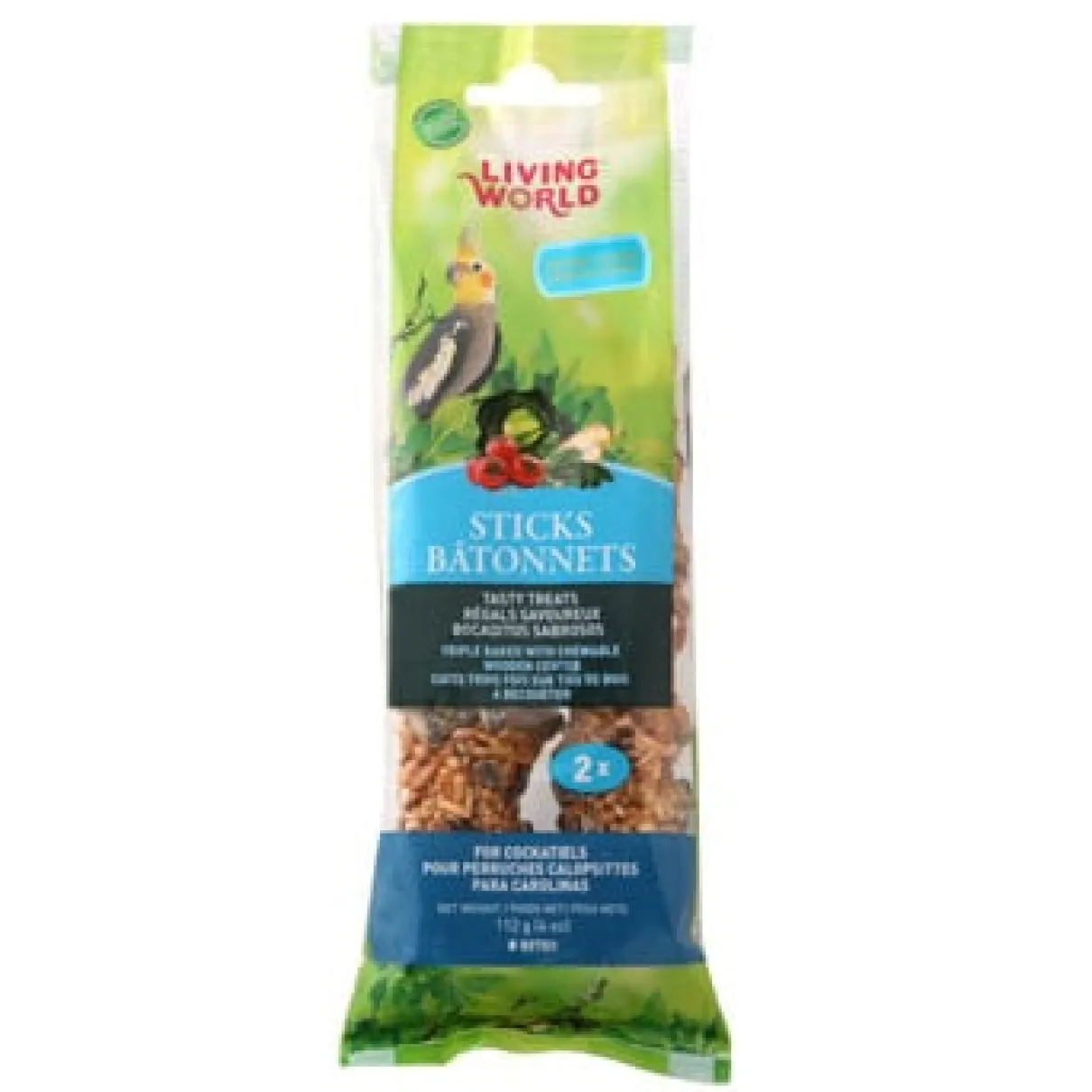 Living World Sticks for Cockatiels are healthy and delicious treats that provide many outstanding benefits, including excellent nutrition plus an enticing incentive to exercise and play. The sticks contain high quality grains, seeds and vegetables, which are triple baked to ensure that your pet bird gets a healthy, crunchy and irresistible treat every time.