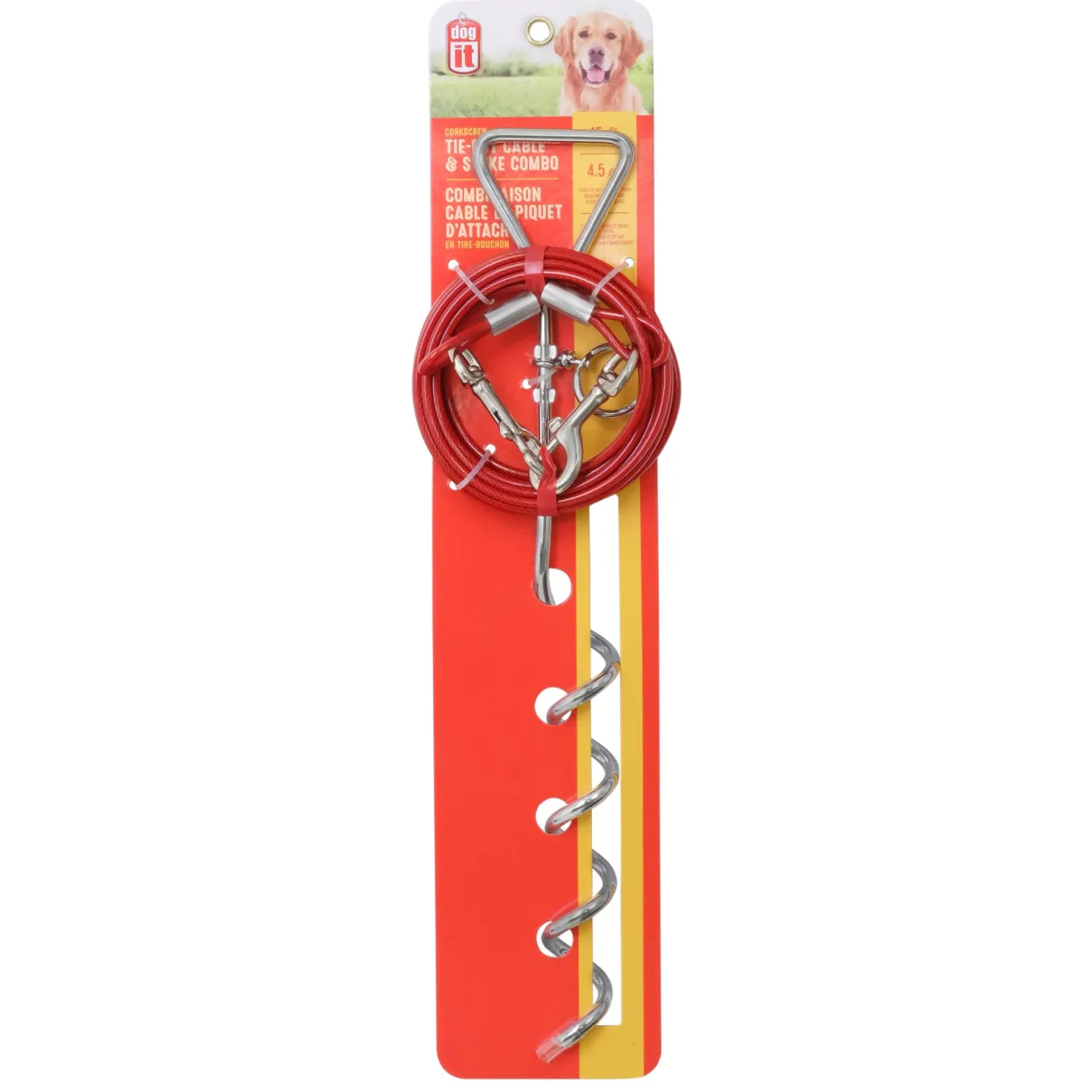 The Dogit Cork-Screw Tie-Out Stake & Cable Set allows your pet the freedom to roam while offering safety and security. Attach one end of the tie-out cable to your pet’s collar, the other to the tie-out stake.