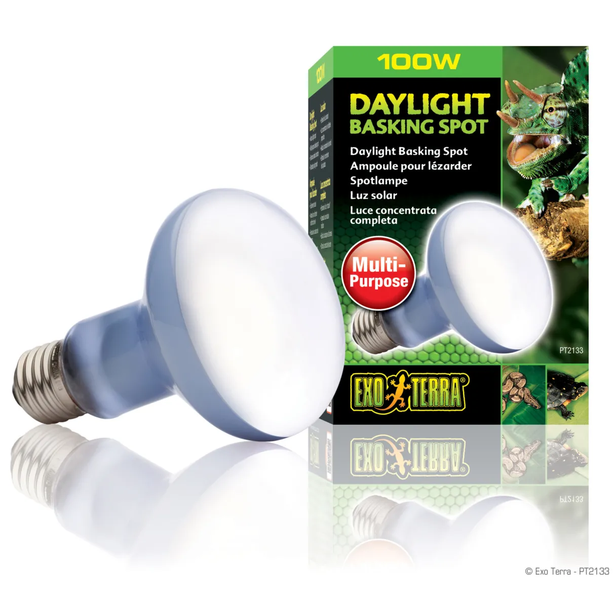 A broad-spectrum daylight spot lamp with a Neodymium sleeve. The spectrum is ideal for plant’s photosynthesis and the UVA (ultraviolet A) light contributes to reptiles’ physiological well-being.