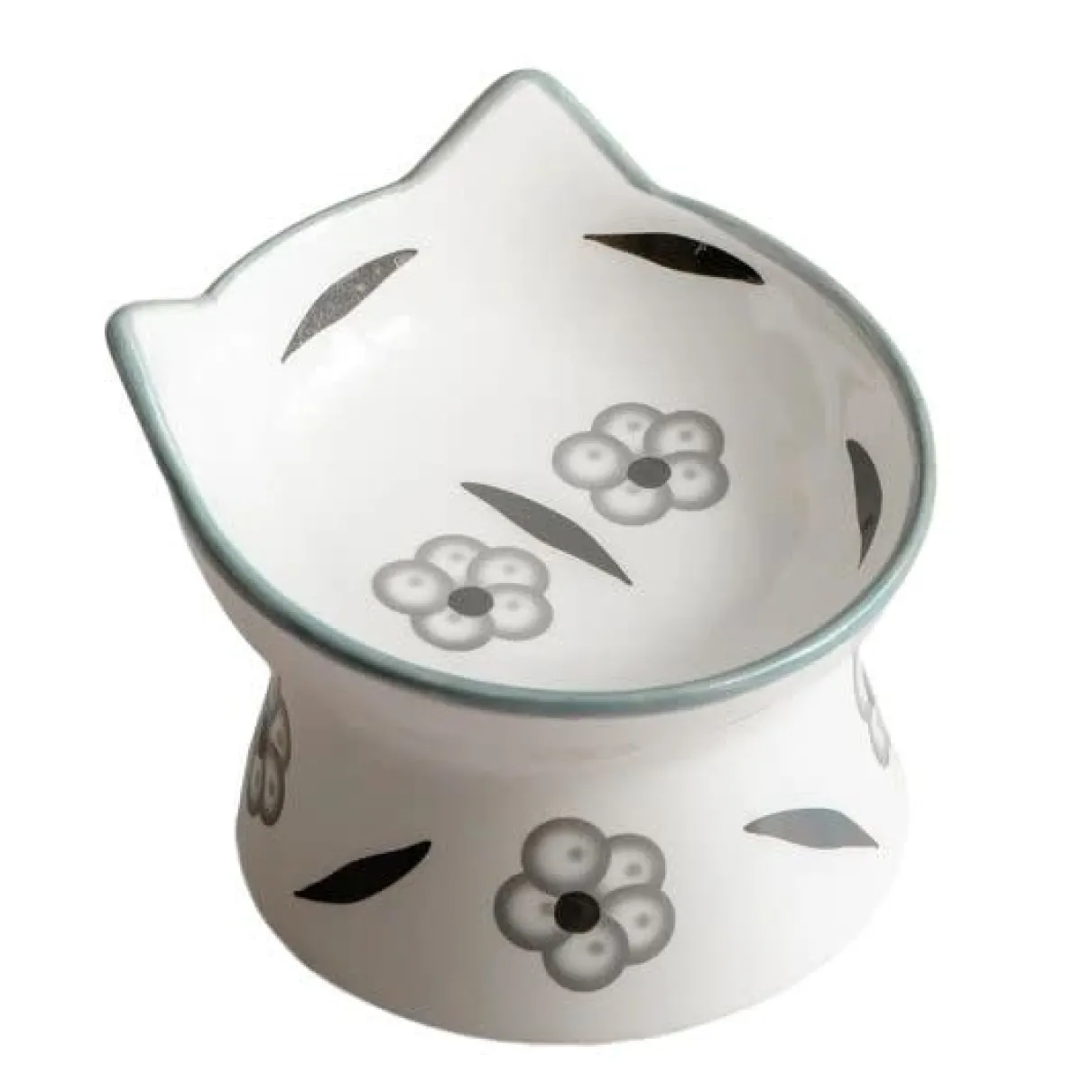 Introducing our Ceramic Elevated Cat Bowl featuring a captivating Floral Print.