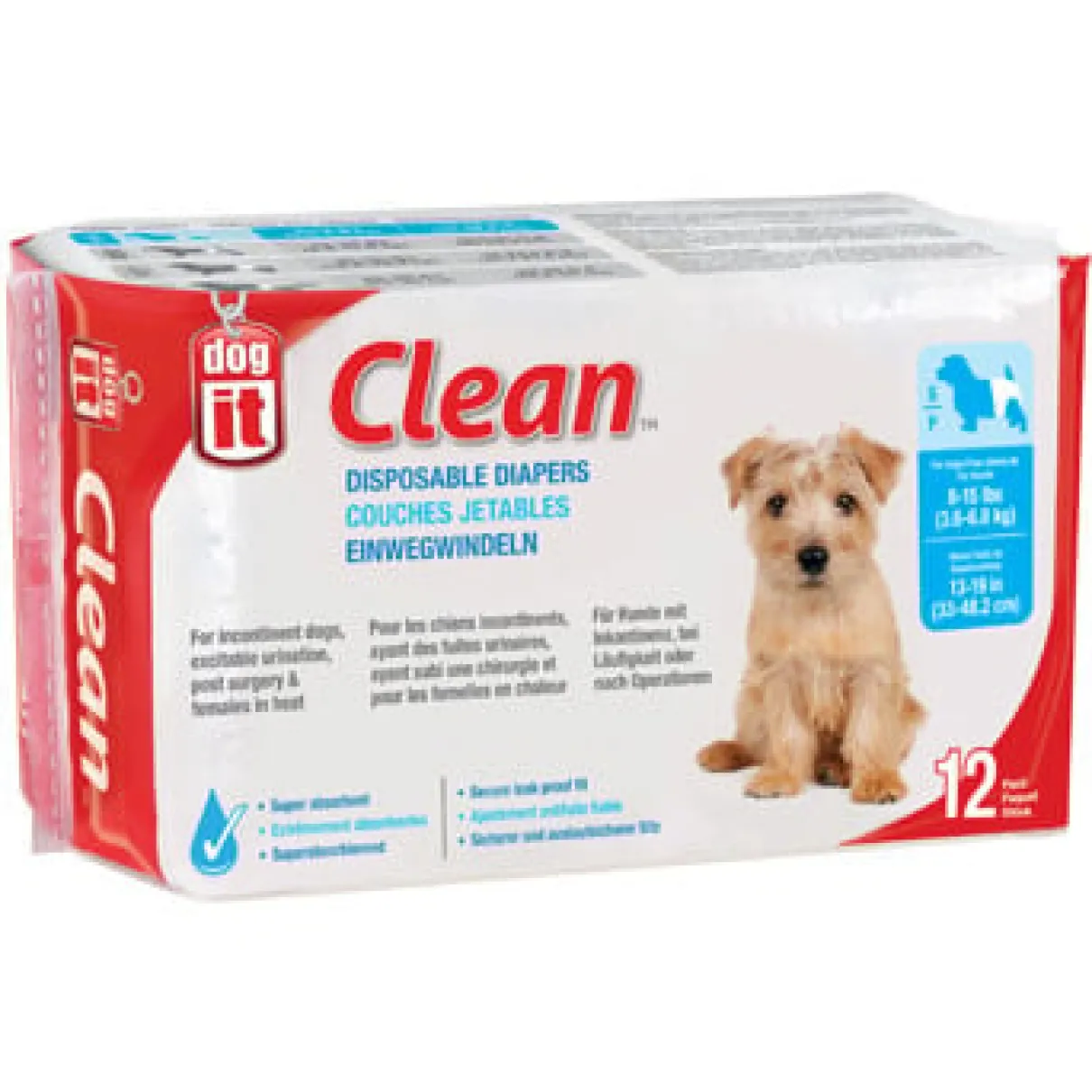 Dogit Clean Disposable dog diapers provide comfortable and reliable protection against leaks due to incontinency, excitable urination, females in heat, and dogs recovering from lower body surgery.