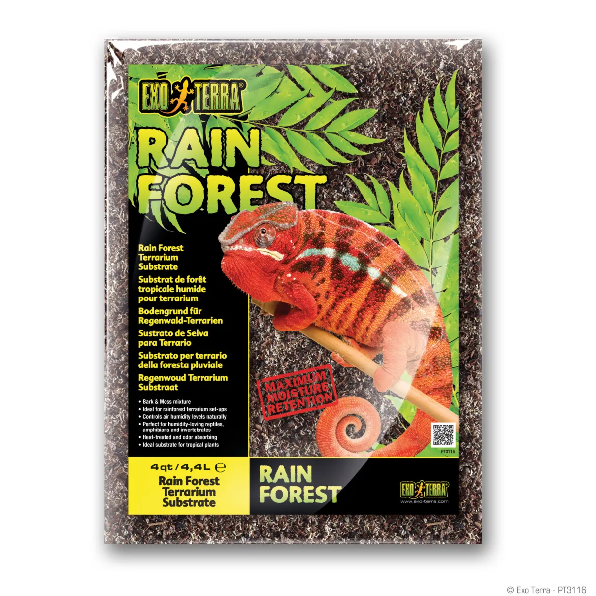 The Exo Terra Rain Forest is a 100% natural, biodegradable reptile substrate mixture made from sustainable Maritime Pine & Sphagnum Moss. Rain Forest Terrarium Substrate is the ideal decorative substrate to create natural planted terrarium set-ups for humidity-loving reptiles, amphibians and invertebrates from tropical rainforest environments.