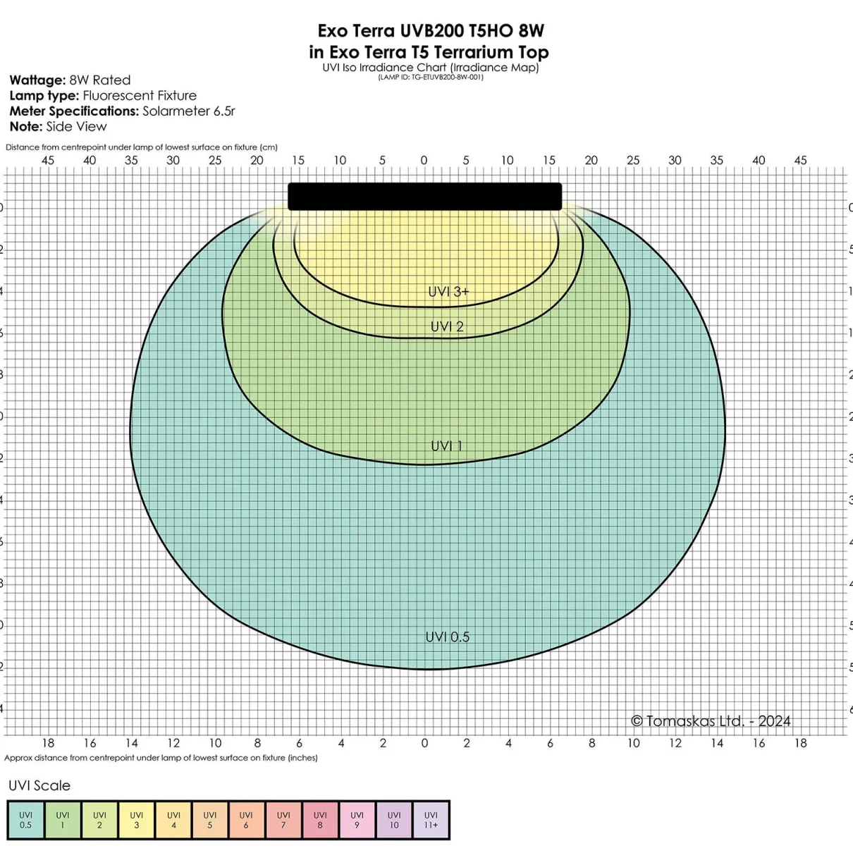 With its 7% UVB output, the UVB200 delivers the balanced UVB exposure required for healthy vitamin D3 production and efficient calcium metabolism, helping prevent metabolic bone disease (MBD). This bulb aligns with Ferguson Zone 2 and the Mesophotic Zone, making it ideal for partial sun baskers that regulate their UV exposure between shaded and sunlit areas. Its medium UV intensity supports reptiles’ natural behaviors while promoting optimal health and vitality. Perfect for enclosures with basking zones and shaded retreats, the UVB200 allows reptiles to self-regulate their exposure, ensuring a well-rounded and stimulating environment. When paired with Exo Terra heat lamps, this bulb creates an ideal combination for maintaining temperature gradients and UV balance in the terrarium.