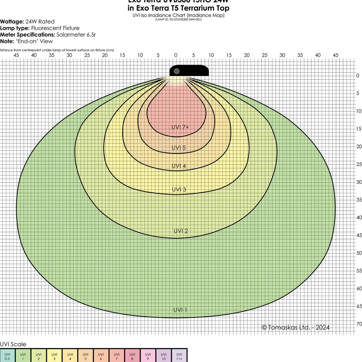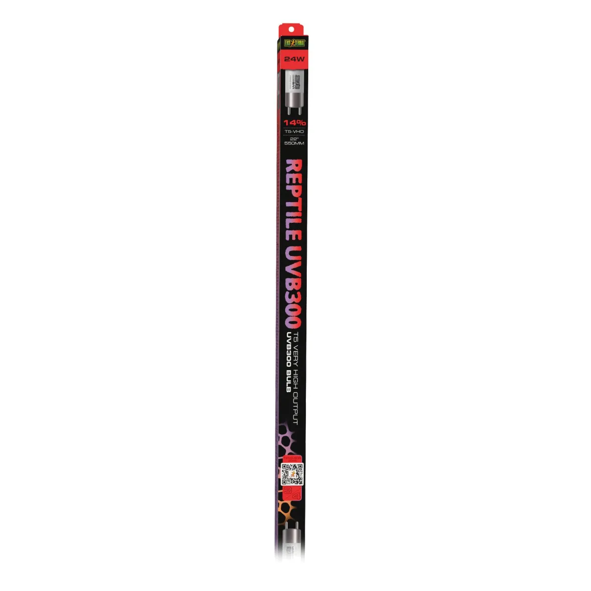 Exo Terra®’s exceptional T5 lamps are crafted in Germany to the highest quality standard, ensuring a prolonged UV output of 12+ months for lasting performance. With its intense output of UVA and UVB rays – combined with a well-balanced visible light spectrum – the Exo Terra® Reptile UVB300 T5 Very High Output Bulb is specifically designed to meet the needs of reptiles basking in open or midday sun in the Euphotic or Heliophotic Zones. The intensity of the emissions varies depending on the distance from the basking area.