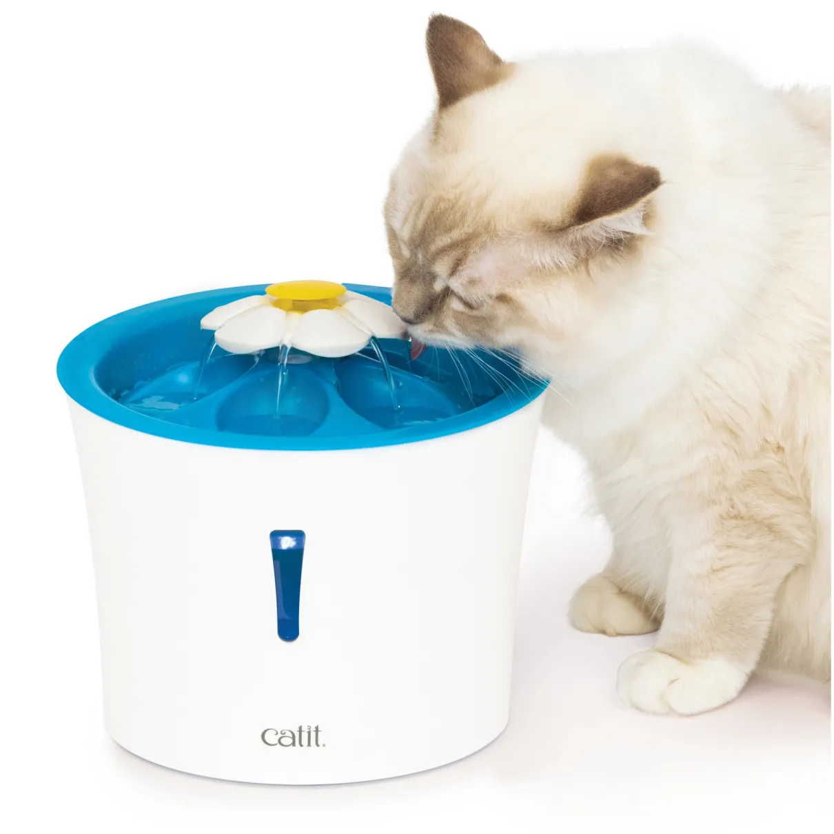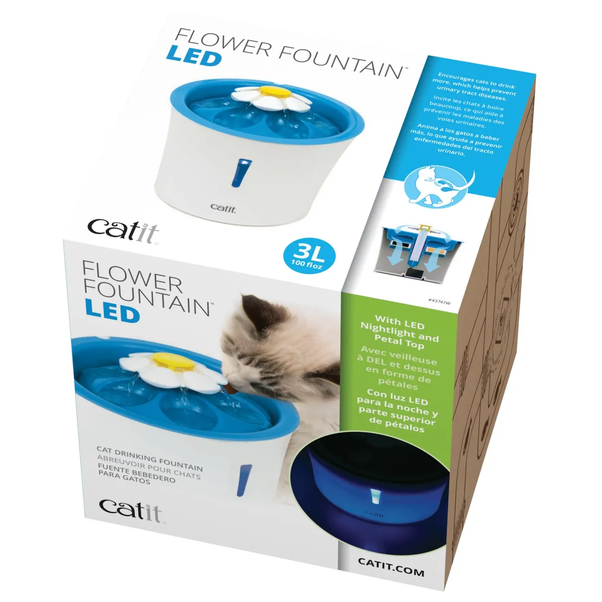 Combining the unique design cats love with some new features never seen before, the Catit Flower Fountain just got an upgrade. The Catit Flower Fountain LED’s compact 3 L (100 fl oz) water reservoir was designed to take up little floor space.