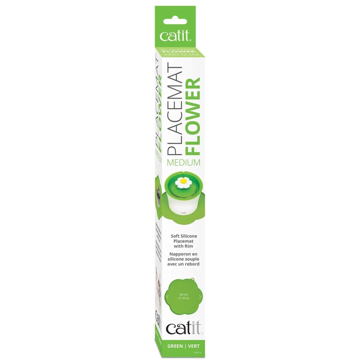 The Catit Flower Placemat is perfect for use with Catit drinking fountains (not included). A soft silicone placemat with a rim. This anti-slip placemat helps protects floors and counter tops from water spills.
