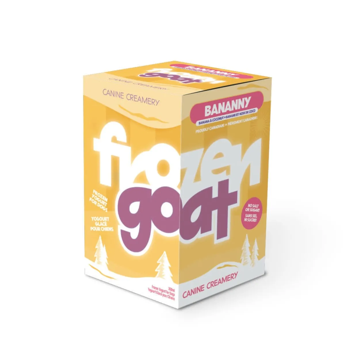 A decadent frozen treat your pet is sure to love! Frozen Goat is made with goat milk yogurt, fruit purée and agar for a 100% natural, thick and creamy treat. Our frozen yogurt is cold fermented and naturally full of probiotics that are great for your furry friend’s gut health. Each box contains 3 x 100ml portioned cups of frozen yogurt.