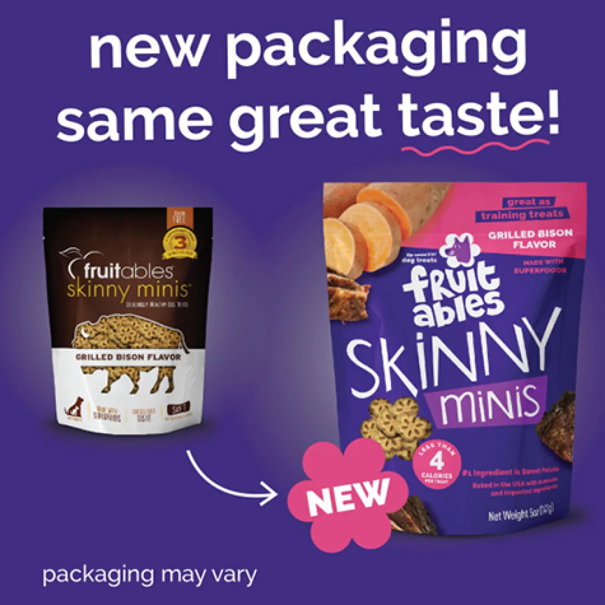 Give your dog a treat that’s not only “paws”itively irresistible but also made for health-conscious pet owners who want only the best! Fruitables Skinny Minis are low-calorie dog training treats specially designed for effective dog training sessions. Crafted with real sweet potato for dogs and a blend of superfoods, these training treats for dogs offer a deliciously yummy flavor that even the pickiest pups love. Each soft and chewy bite is less than 4 calories, making them ideal for frequent rewards without adding unnecessary weight, keeping your dog healthy and happy. These dog treats are perfect for all sizes, from dog treats for small dogs to dog treats for medium dogs, providing a bite-sized reward that satisfies. Fruitables dog treats are made with high-quality, natural ingredients and contain no wheat, corn, or soy, making them a fantastic choice for dogs with sensitivities. With their low-calorie content and satisfying flavors, they’re a healthier dog treat option for everyday training or as a guilt-free reward. Proudly made with carefully sourced ingredients, these Skinny Minis offer quality you can trust. Whether you’re using them as dog training treats or simply indulging your furry friend with a tasty snack, you can feel confident knowing you’re giving them a nutritious treat with natural goodness. Support your dog’s active lifestyle and reward them with these irresistibly flavorful, healthy dog treats. Perfect for pet owners looking for low calorie dog treats that help with training and offer peace of mind with every bite!