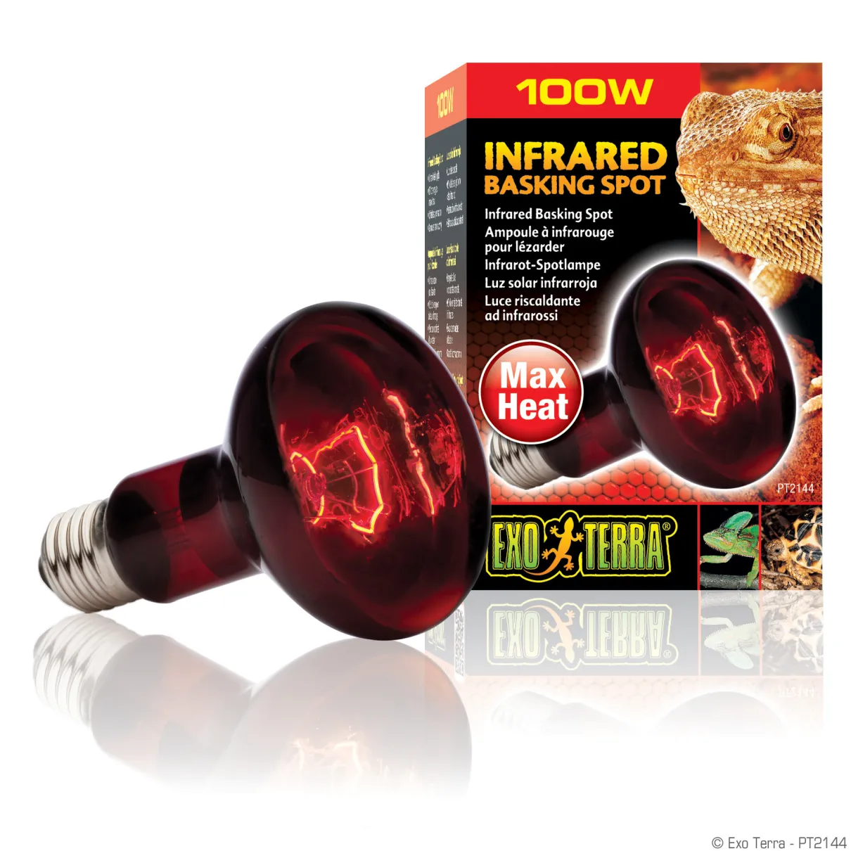 The bulb emits infrared heat waves and is a typical heating lamp. The spot lamp has a special build-in reflector to direct the heat in any direction required. The red glass transmits Infrared waves produced by the special filament of the bulb.