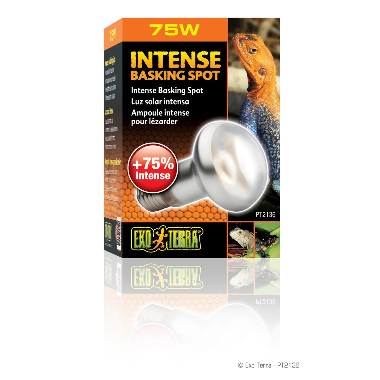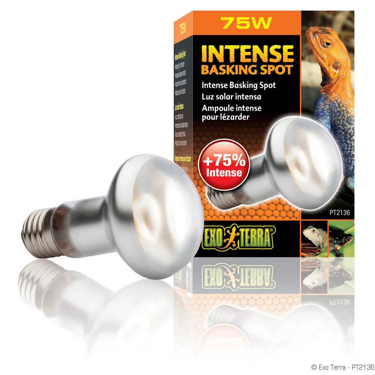 A lamp specially designed as a basking spot lamp. The tight beam can be directed precisely on an area to create a basking site. The heat and light in the beam is increased by 35%, allowing greater distances between the bulb and the basking site. The UVA (ultraviolet A) light contributes to reptiles’ physiological well-being.