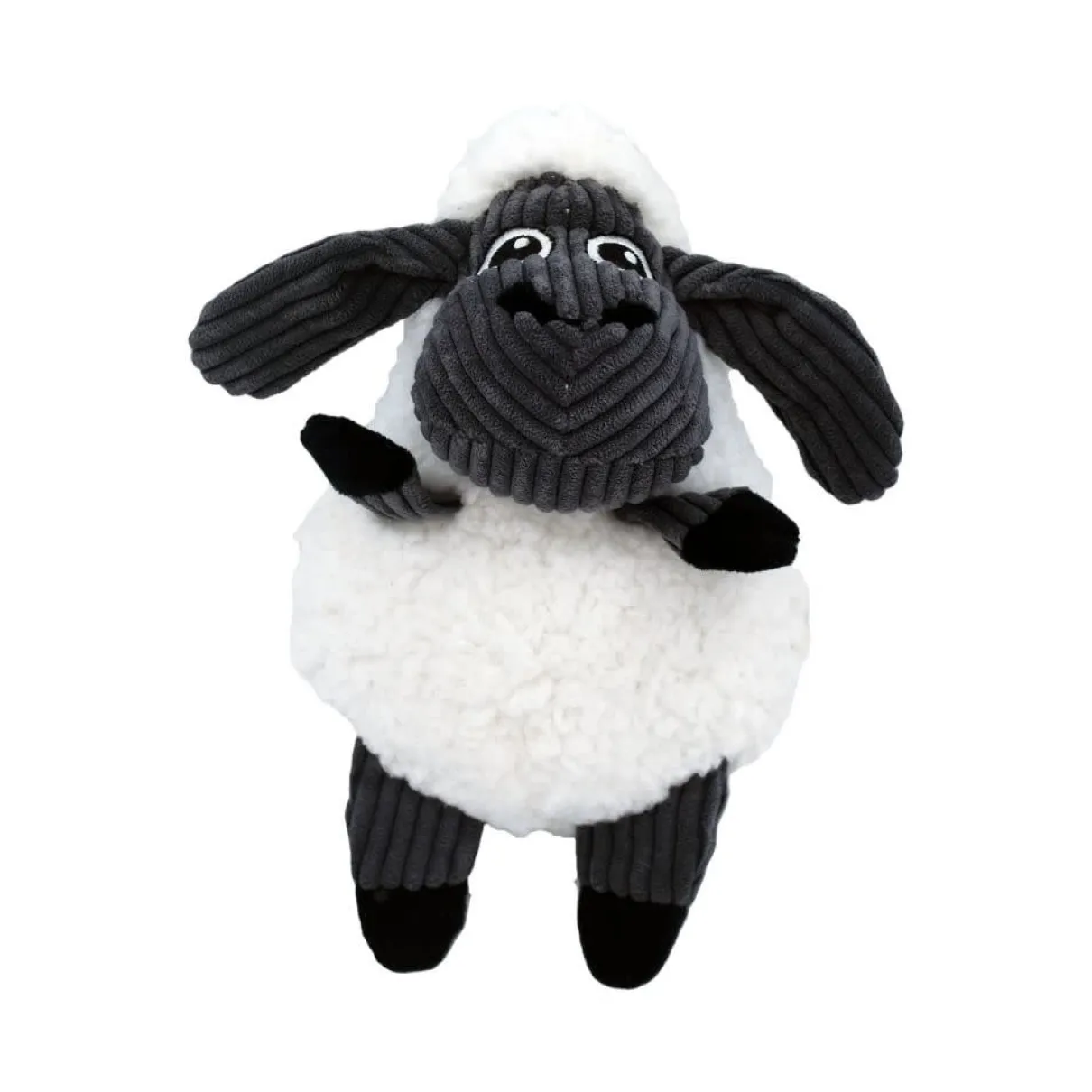 The KONG Sherps Floofs Sheep has an uber plush exterior that is irresistibly snuggly for cuddling between gentle games of indoor fetch. The unique flat squeaker in the body provides full on fun with sounds all around. Crackly ears extend and delight dogs making playtime last longer. Lined for long-lasting fun, dogs of all sizes can easily grab on and play with these adorable adventure buddies.