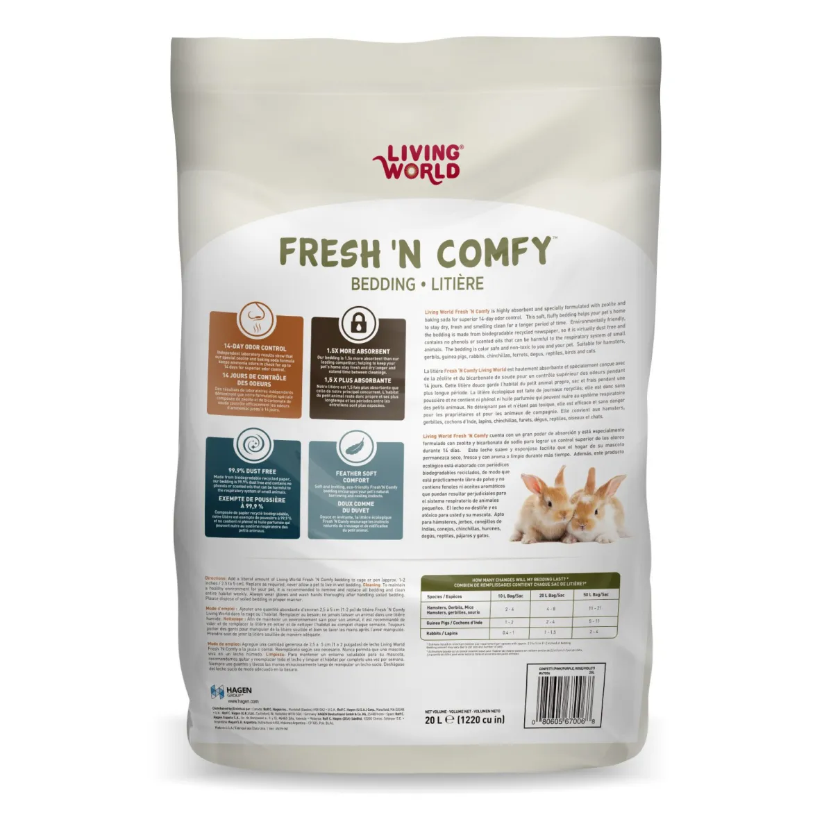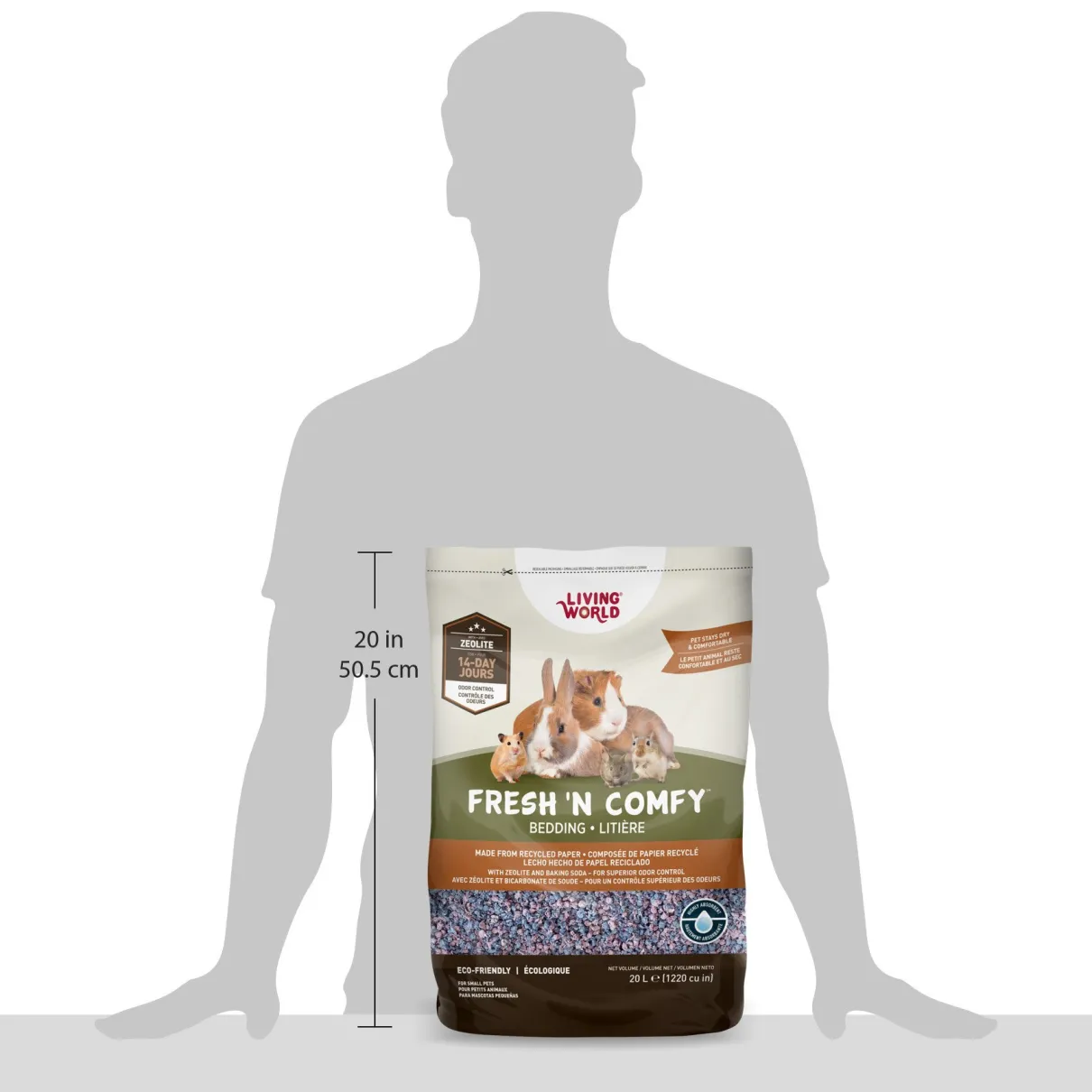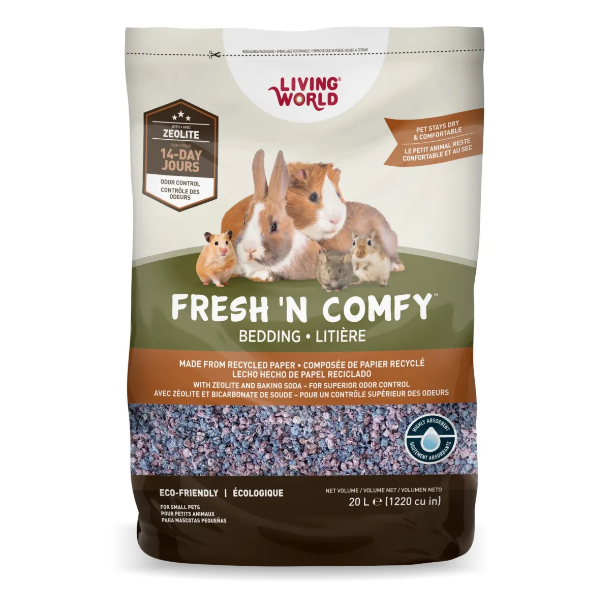 Living World Fresh ‘n Comfy Bedding is environmentally friendly bedding made from biodegradable recycled newspaper. Highly absorbent, it’s specially formulated with zeolite and baking soda to help provide superior odor control for up to 14 days, keeping your pet’s home dry, clean and smelling fresh for a longer period of time.