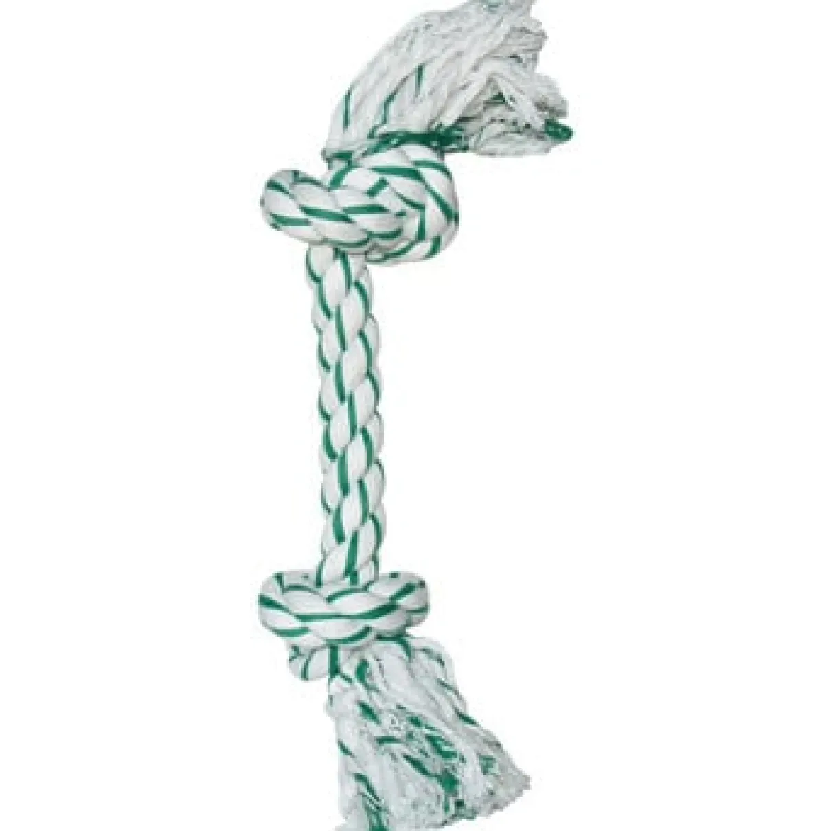 Green and White Mint-Flavoured Knotted Rope Toy (cotton/polyester blend).
