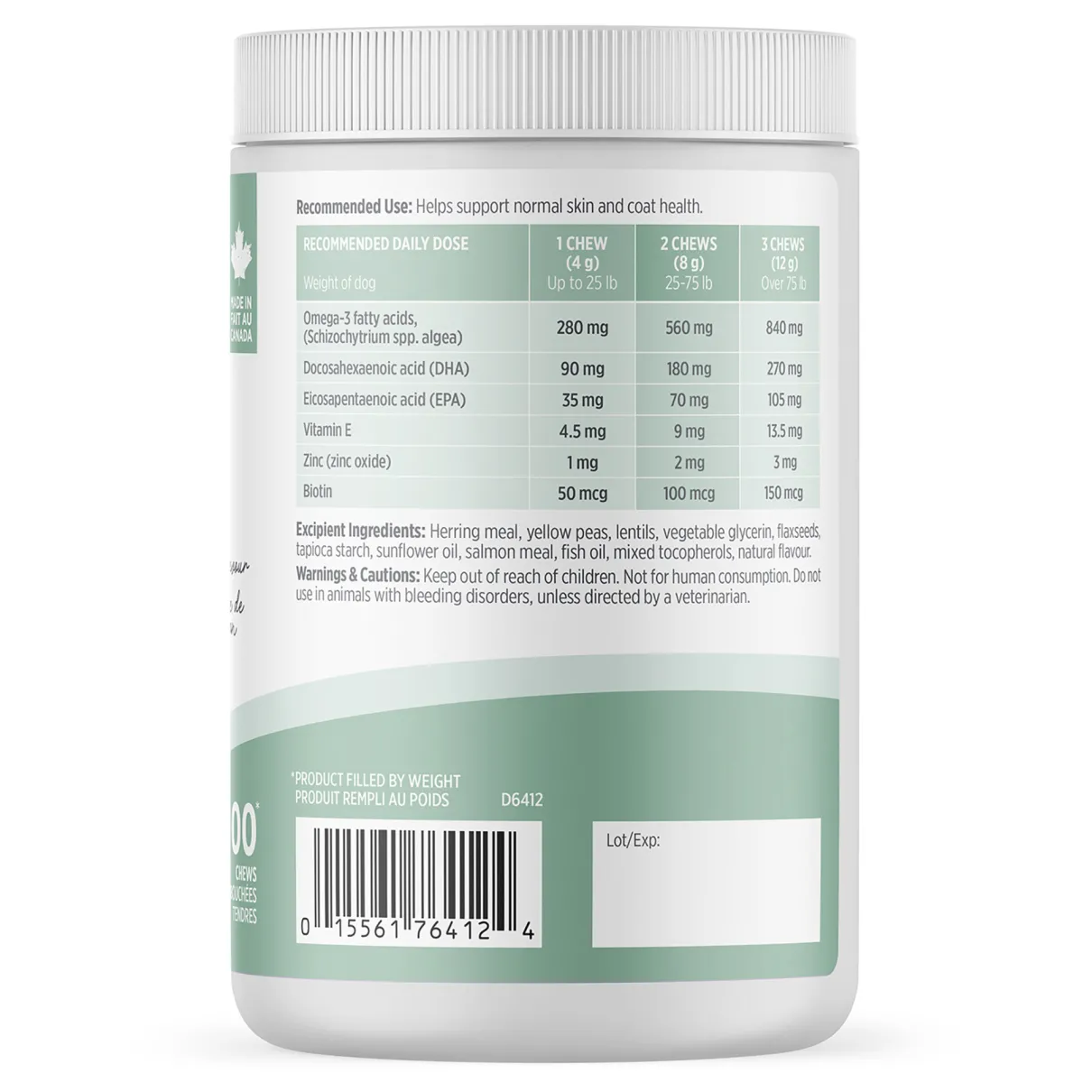 Recommended Use: Helps support normal skin and coat health.