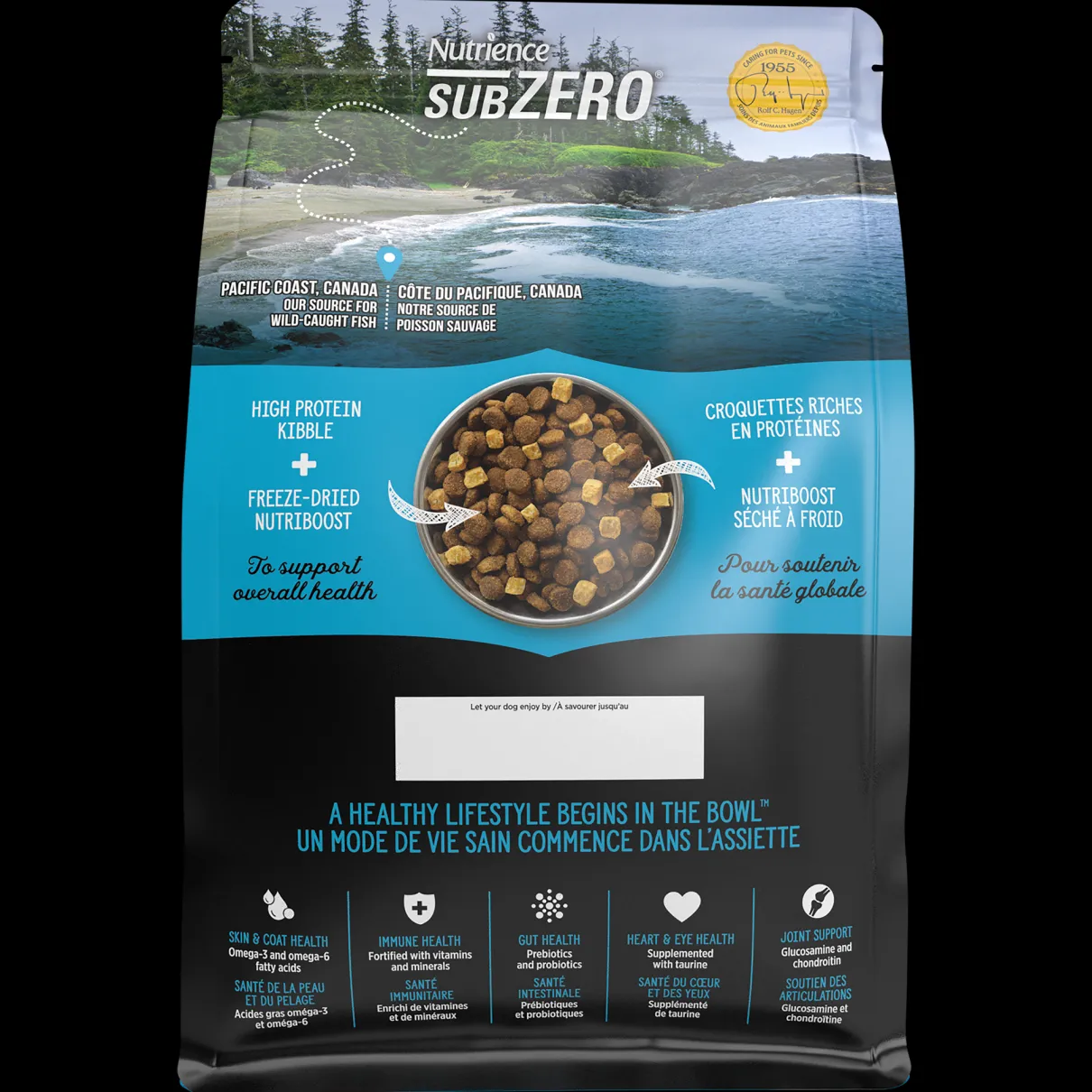 Nutrience SubZero Canadian Pacific dog food is made in Canada and prepared with fresh, Canadian-sourced wild-caught fish from the Pacific Coast including salmon, cod, sole, and rockfish. Only the highest quality proteins from trusted sources are selected for our formulas.
