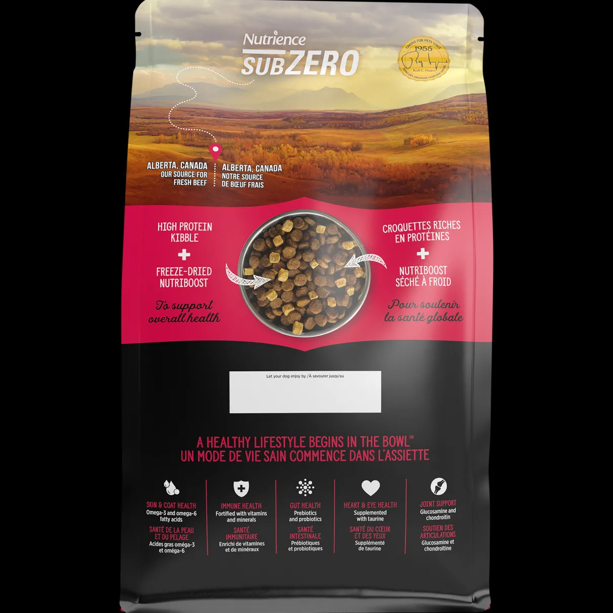 Nutrience SubZero dog food is made in Canada and prepared with fresh, never frozen Canadian sources of beef, pork, bison, wild boar and wild-caught fish for a quality you can trust in. Our whole prey, high-protein kibble is combined with freeze-dried raw NUTRIBOOST to deliver peak nutrition and provide a foundation for health, vitality and longevity.