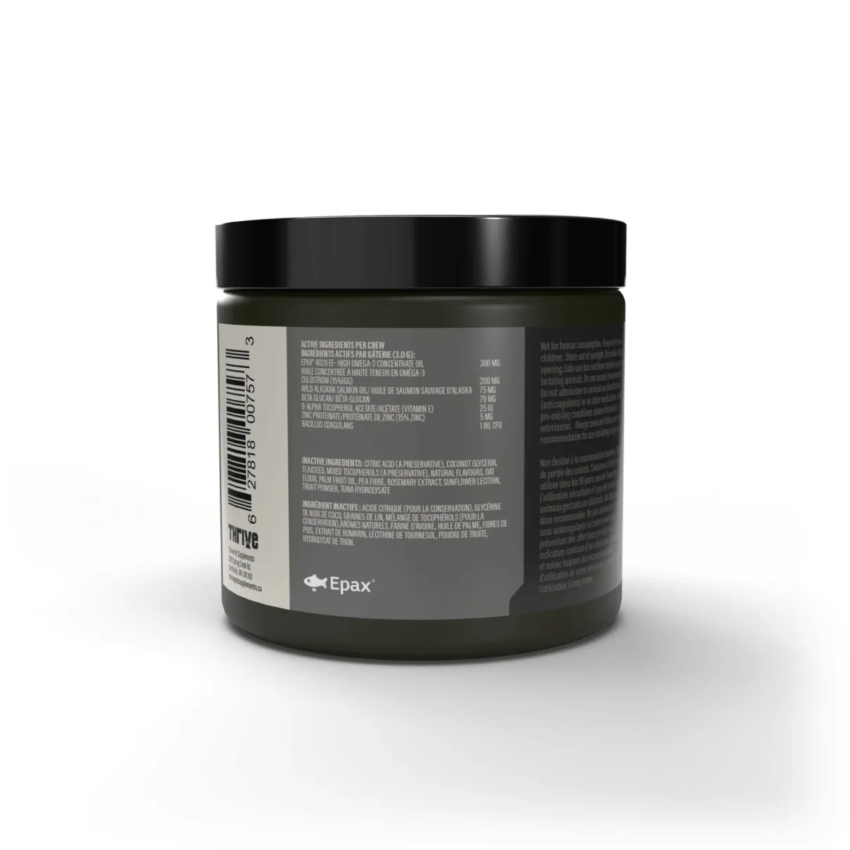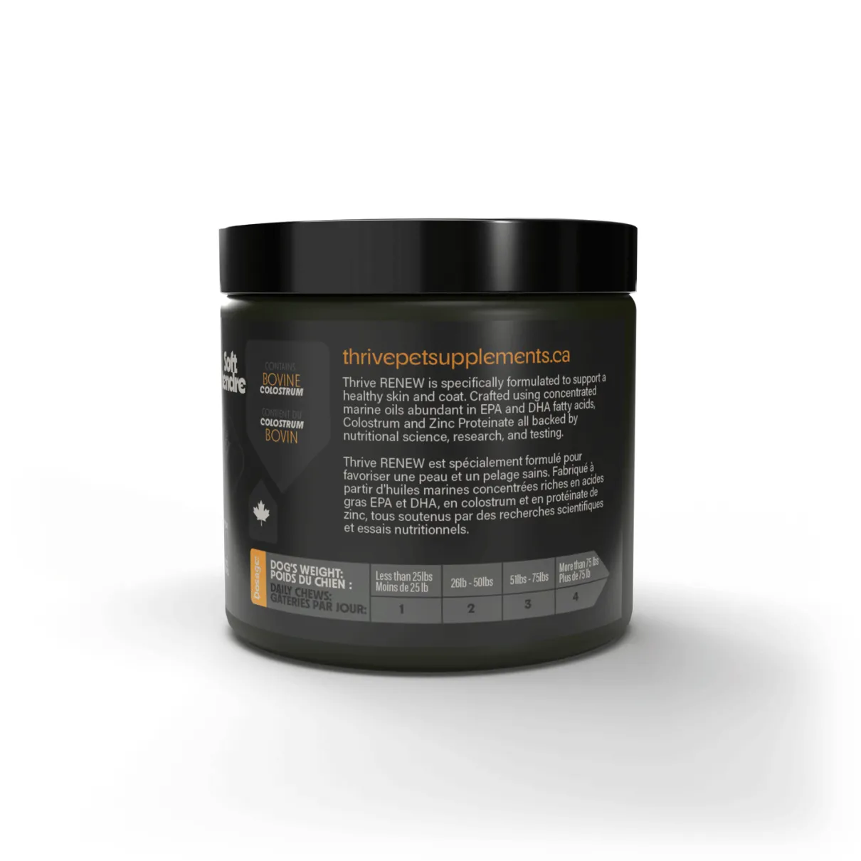 Soft Chew Dog Supplement specifically formulated to support a healthy skin and coat. Crafted with premium ingredients including EPAX® 4020 EE- High Omega 3 Concentrate Oil, Colostrum (supporting immune system function and gut health), and Zinc Proteinate (fuller, darker, smoother, and softer coat) all backed by nutritional science, research, and testing.