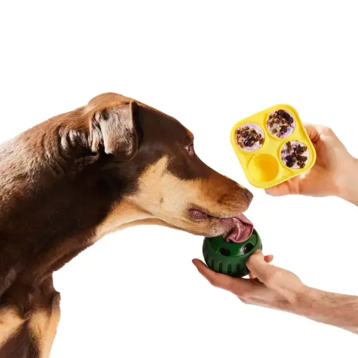 Fill the tray with your dog’s favorite foods (like broth or wet food), freeze for a few hours, then pop out a few treats and you’re good to go!