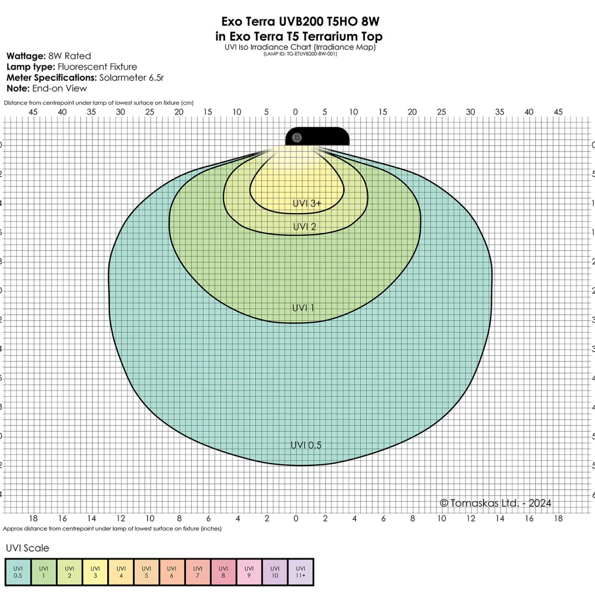 Exo Terra®’s exceptional T5 lamps are crafted in Germany to the highest quality standard, ensuring a prolonged UV output of 12+ months for lasting performance. With its intense output of UVA and UVB rays – combined with a well-balanced visible light spectrum – the Exo Terra® Reptile UVB200 T5 Very High Output Bulb is specifically designed to meet the needs of reptiles that bask occasionally or in partial sunlight in the Mesophotic Zone. The intensity of the emissions varies depending on the distance from the basking area.