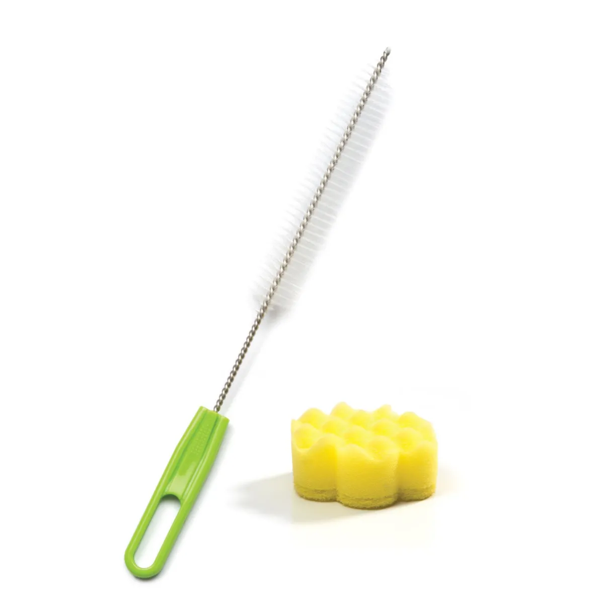 This two-piece maintenance set is suitable for Catit drinking fountains. The set contains a hard bristle brush with fine tip for accessing small areas and a flower-shaped cleaning sponge with dual textures and wavy surface.