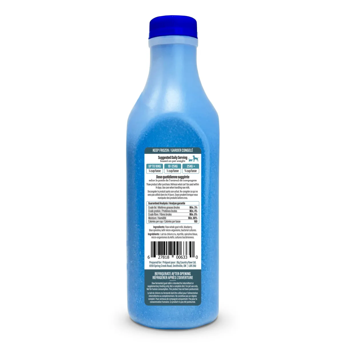 Raw whole goat milk, blueberry, blue spirulina, kefir mirco-organisms, bacteria cultures.