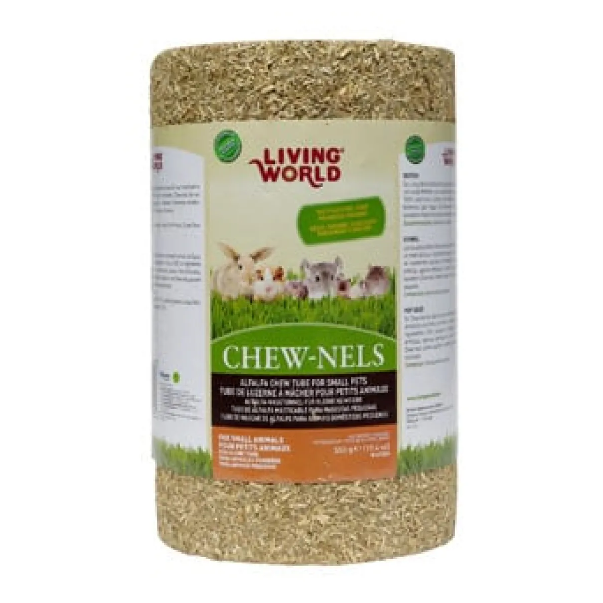 Living World Alfalfa Chew-nels are natural treats, chew toys and hiding places, all rolled up into tasty, fun, and enticing tubes!