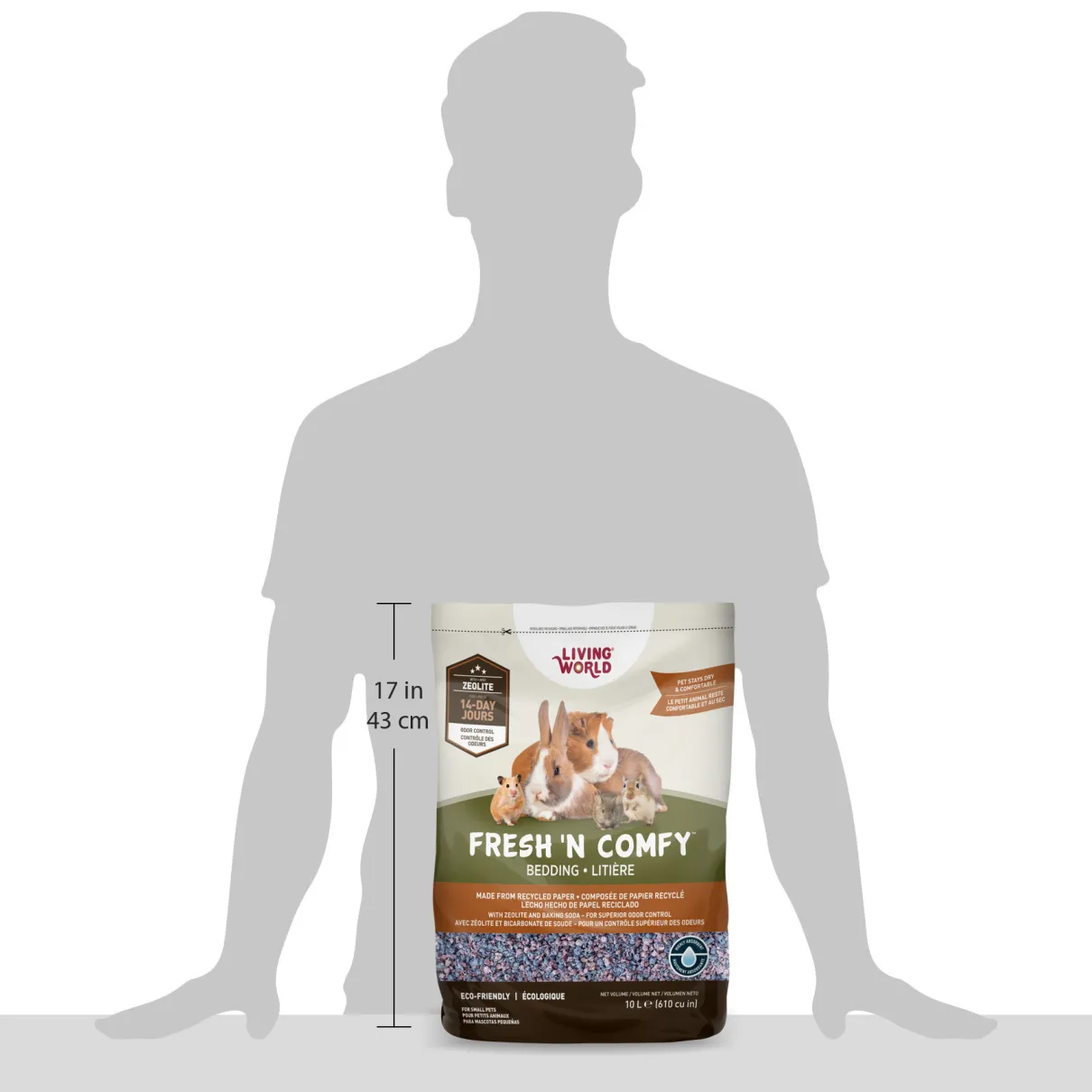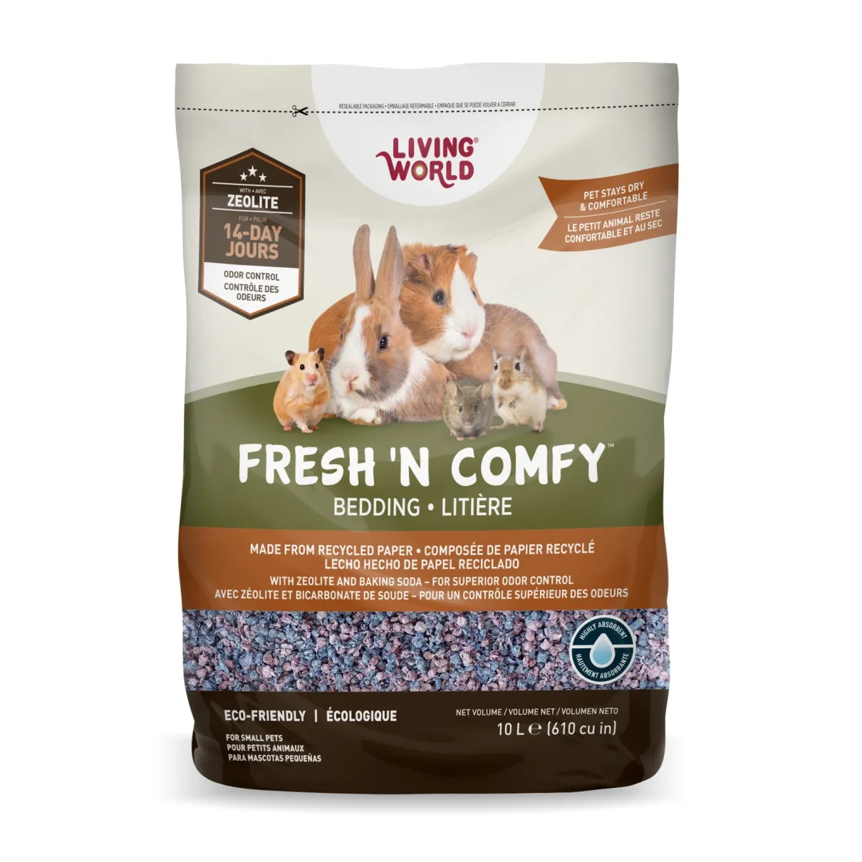 Living World Fresh ‘n Comfy Bedding is environmentally friendly bedding made from biodegradable recycled newspaper. Highly absorbent, it’s specially formulated with zeolite and baking soda to help provide superior odor control for up to 14 days, keeping your pet’s home dry, clean and smelling fresh for a longer period of time.