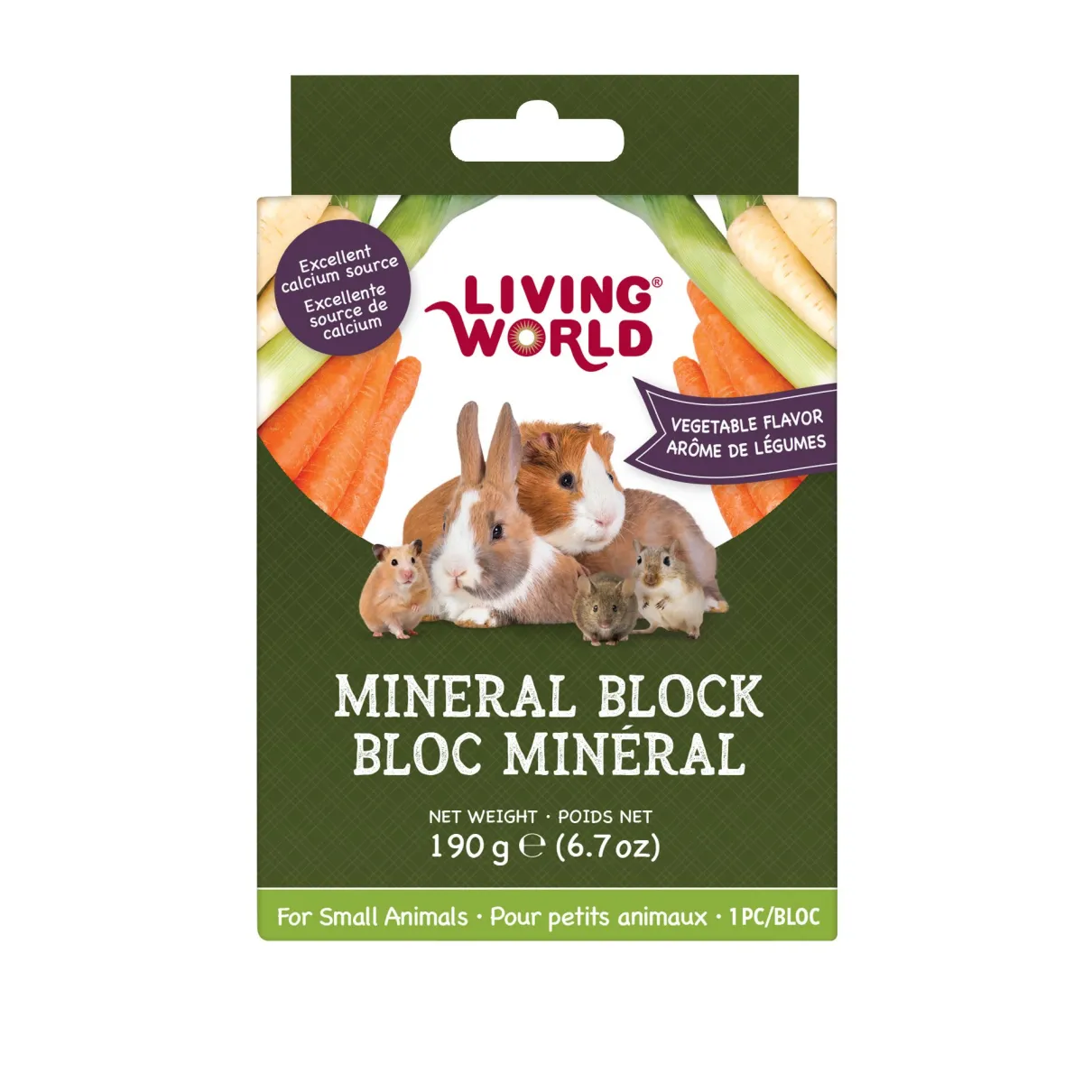 Living World Mineral Blocks are a complementary pet food for small animals (pet rabbits, guinea pigs, hamsters, and other small pets). Excellent source of calcium.