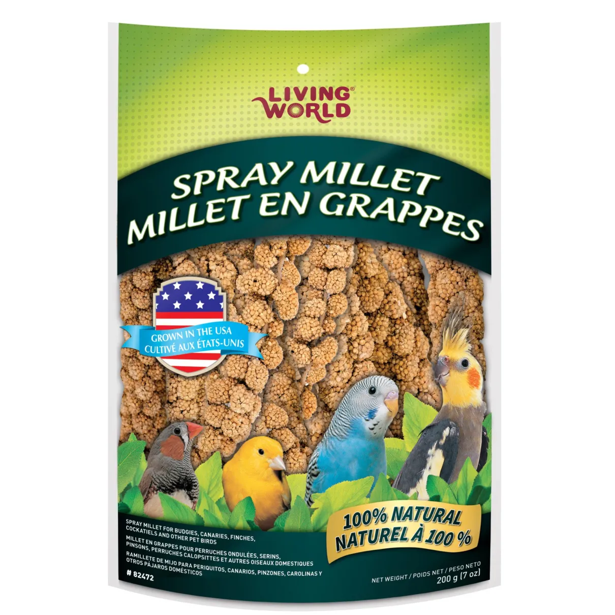 Living World Spray Millet is a nutritious premium quality treat for all companion birds. A good source of carbohydrates and low in fat, this highly digestible treat is made of all-natural millet that is grown in the USA, freshly harvested from the wild and does not contain any additives.