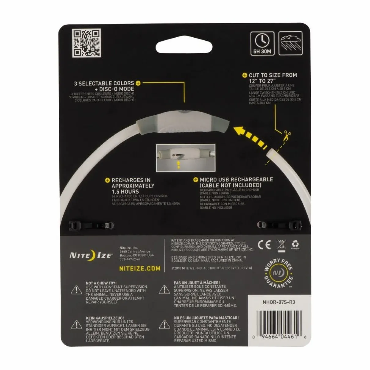 To use the NiteHowl®, simply trim the flexible polymer to a custom fit, give the button on the durable, weather resistant housing a quick press, and the entire collar lights up a full 360 degrees, making your dog clearly visible from all angles.