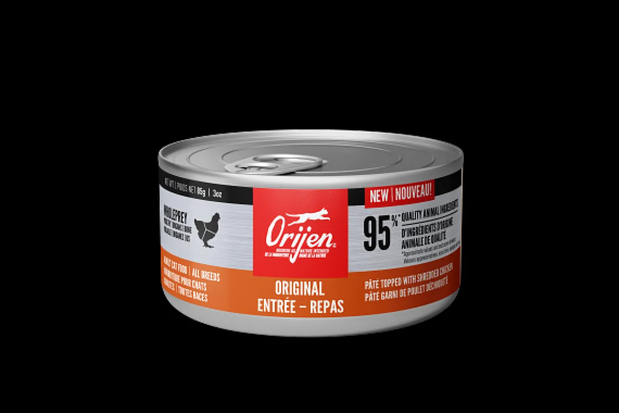 NEW ORIJEN® Wet Cat Food is a super premium pâté packed with WholePrey animal ingredients. ORIJEN® Original Entrée includes raw WholePrey ingredients like poultry, organs and bone that provide the protein, nutrients and minerals your cat needs to be their best. At least the first 5 ingredients in every ORIJEN diet are fresh or raw animal ingredients, and the first 8 ingredients in this wet cat food diet are raw poultry and fish ingredients. Packed with 95%1 animal ingredients and no peas, lentils, legumes, carrageenan or gums, ORIJEN Wet Cat Food provides the nourishment your cat needs to thrive.