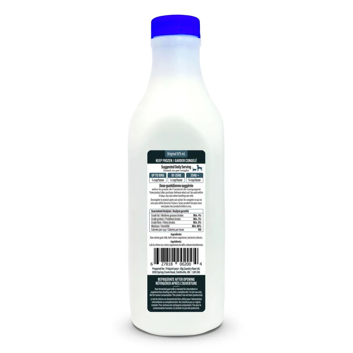 Sourced from a Canadian Dairy, Big Country Raw Fermented Goat Milk is of superior quality and freshness. Goats are raised on nutritious year-round diet of natural NON-GMO alfalfa hay ( up to 96 % of total diet), free pasture as much as the goats take in, and a grain ration that includes a protein, mineral and gut health source. Our goat milk is also guaranteed to be free of antibiotics and hormones.