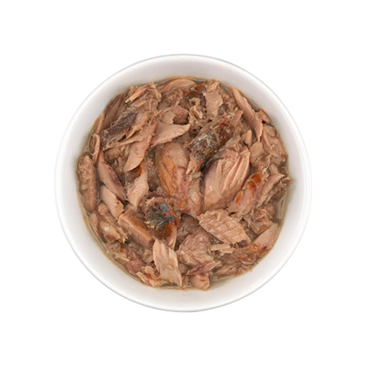 Tender chunks of flaked ahi tuna and mackerel in a purr-worthy tuna consommé. High protein, with real tuna and mackerel as the first two ingredients. High moisture to give cats the supplemental water they need. Complete and balanced for all life stages.